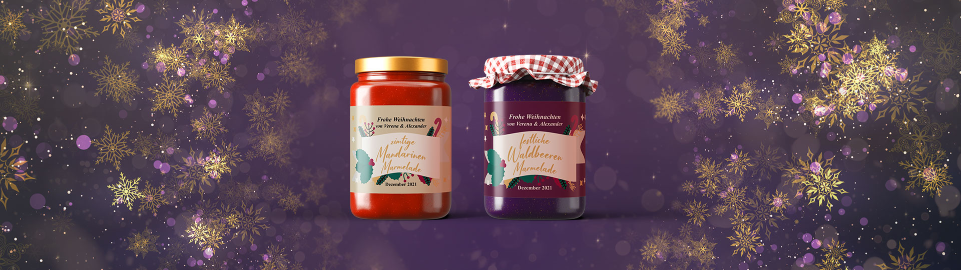 Süß, süßer, Weihnachtsmarmelade. Wie verpackt man besser den Duft und den Geschmack von der Adventszeit, als mit sweet, tangy Mandarinenmarmelade und Waldbeerenmarmelade? Noch ein herzliches Design und das perfekt Geschenk steht unterm Christbaum.