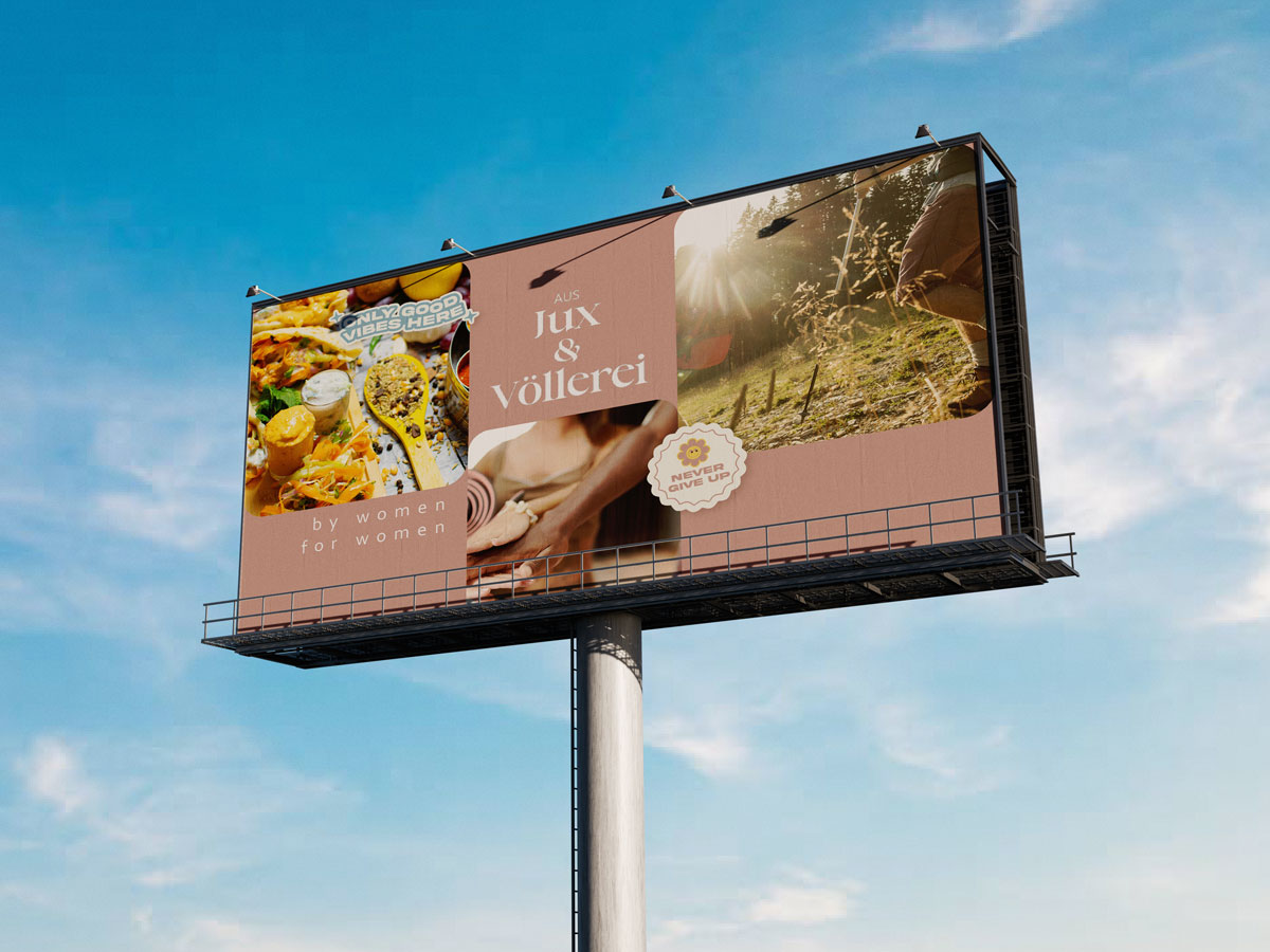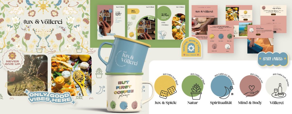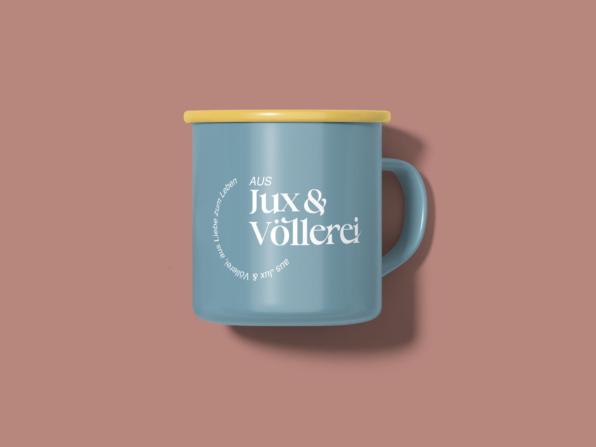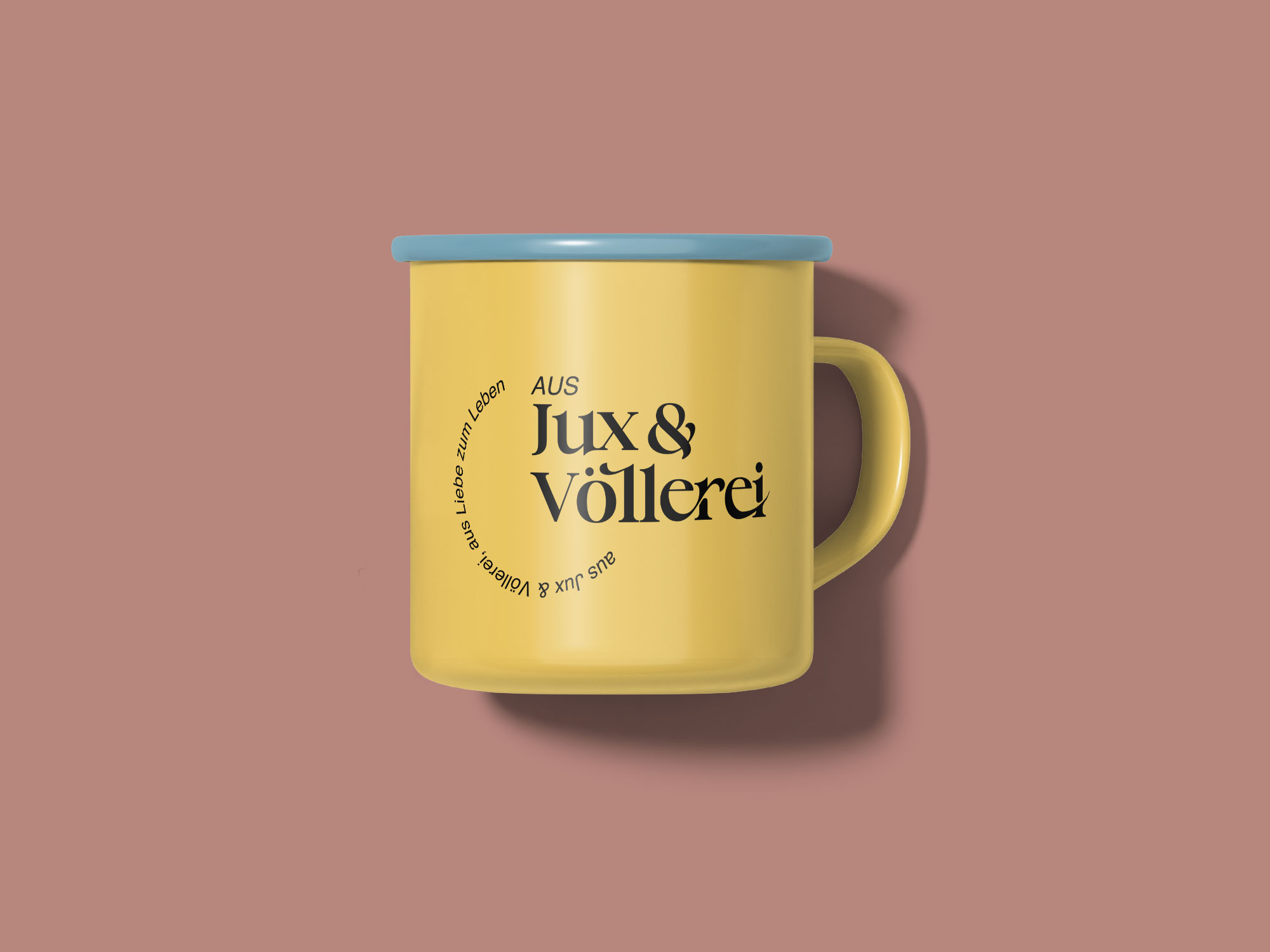 Der Name kombiniert Humor („Jux“) mit Genuss („Völlerei“). Daraus ergeben sich klare Designansätze. Priorität Nr. 1: Was stellt sich dein Kunde vor? Was spiegelt die Emotion dahinter wider?