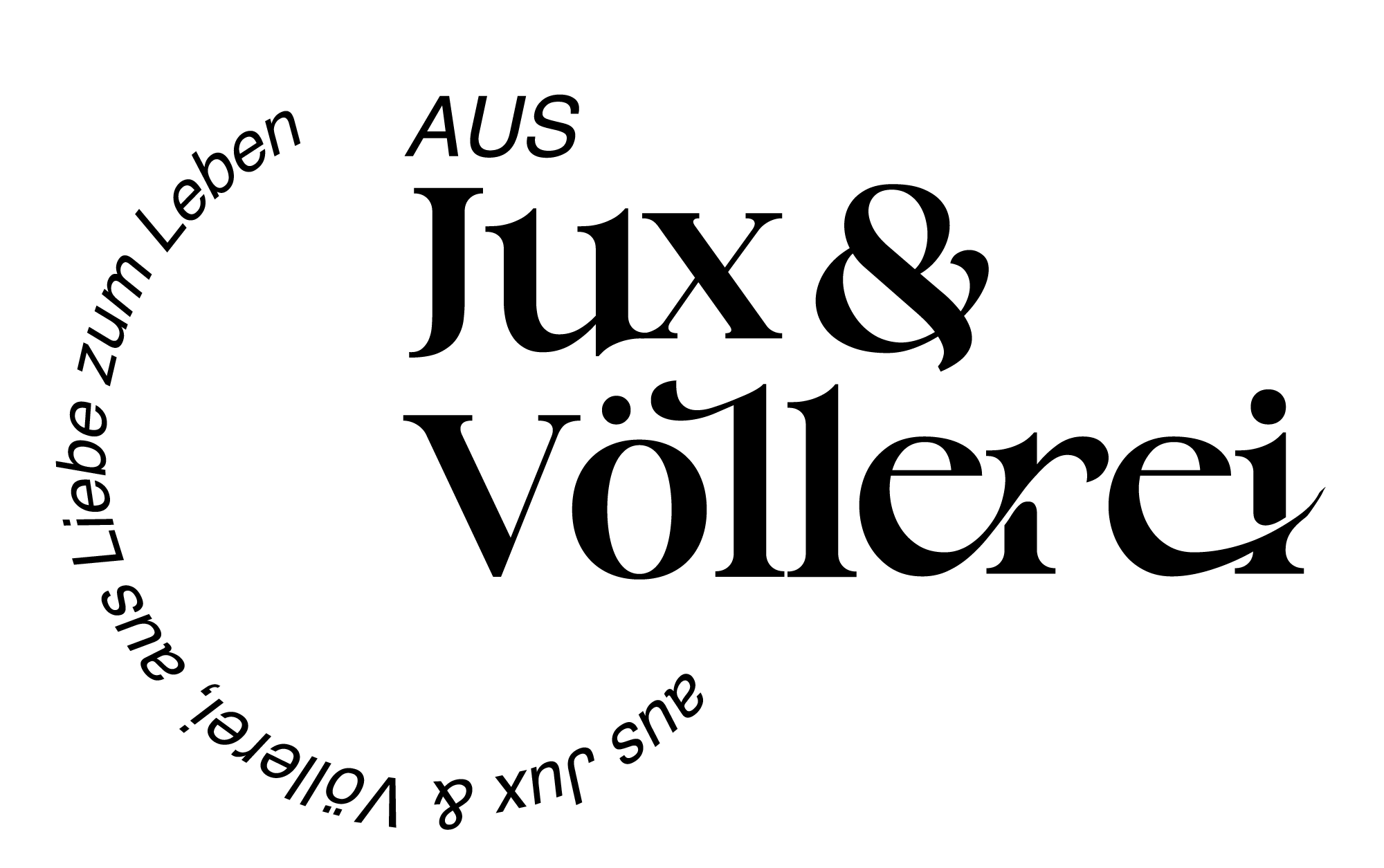 Gerade bei einem Lifestyle Blog wie Jux & Völlerei, der Genuss, Humor und Lebensfreude vereint, muss das Logo: